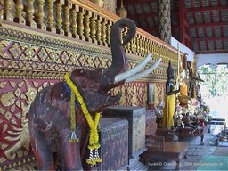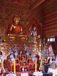 We made several visits to Chiang Mai. The first ones were made in a group which did not leave us enough time to wander at leisure. So we came back for five days by ourselves. Part of that time was spent getting annual medical checkups and part of it was spent in the area 100+ km to the south, which we got to by rented car. Below are two photos of one of the many temples that we visited while in Chiang Mai. Although it is difficult in retrospect to separate each from the other in our minds, we have to say that even so, every one was well worth visiting. They are all different and yet of course all are similar. This wonderfully ornate temple is called Wat Suan Dok and is located on the grounds of Chiang Mai University.We visited it with Pi Dom and Pi Bol after a most delicious lunch of Khao Soi (noodles).