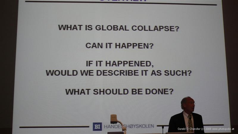 The second talk was by Jorgen Randers, one of the original (but less famous) authors of the 1972 hit, "The Limits of Growth". He was basically promoting the 30-year update of the original book. He's switched from saying we'll run out of oil to saying we're going to burn so much oil that (due to CO2) the earth will bake and we'll all die of ... you name it. The audience of about 100-200 people was pretty sympathetic to his dire warnings, delivered in a very humorous, almost self-deprecating way, of the crash that is coming due to global warming. This topic has gotten a lot of news in the Sydney papers recently because the Prime Minister, John Howard, has become a sort of convert, possibly out of the necessity of keeping ahead of his voters. Gerry is pretty skeptical over the whole matter; Jan much less so or at least thinks due worry should be given.